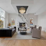 Step inside to discover a world of elegance, featuring gorgeous red oak flooring and high-quality European dual-function windows that flood the space with natural light. The grand entrance opens to a spacious open-concept living area that seamlessly blends dining, entertaining, and culinary excellence. The chef's kitchen boasts an oversized island, Forno appliances, and unique stretch vinyl ceilings that add distinctive design and ambient lighting.